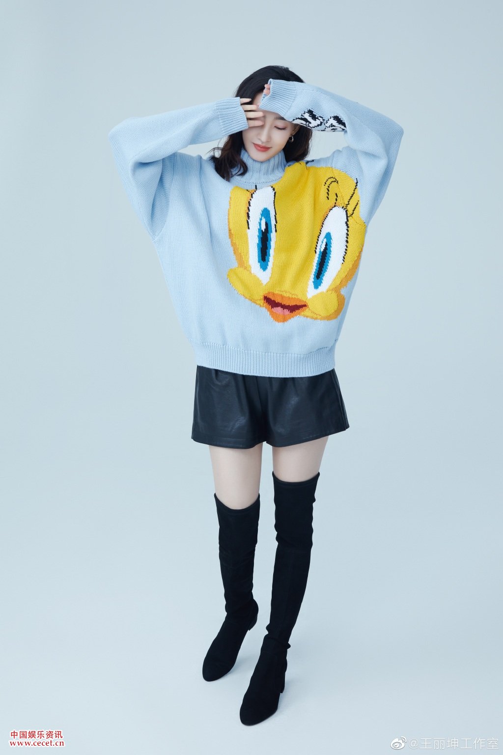 王麗坤毛衫搭配短褲照 酷帥隨性盡顯青春時(shí)尚