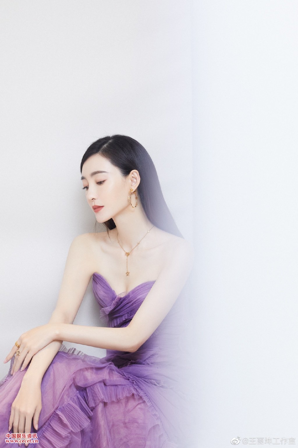 王麗坤時(shí)尚大片釋出 紗裙擺尾墜入紫色銀河