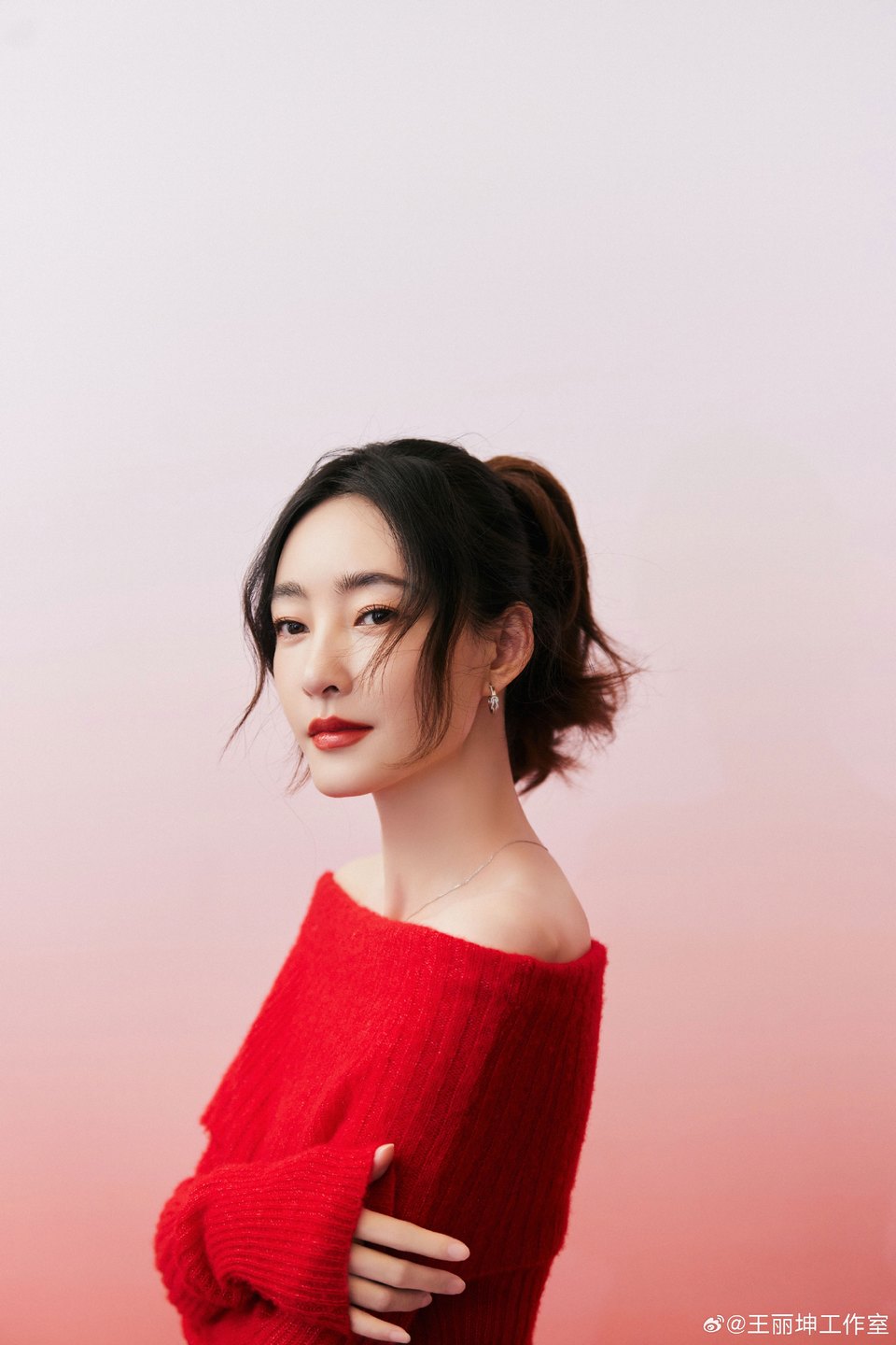 王麗坤紅色齊肩毛織衫 鎖骨線(xiàn)條精致溫婉迷人