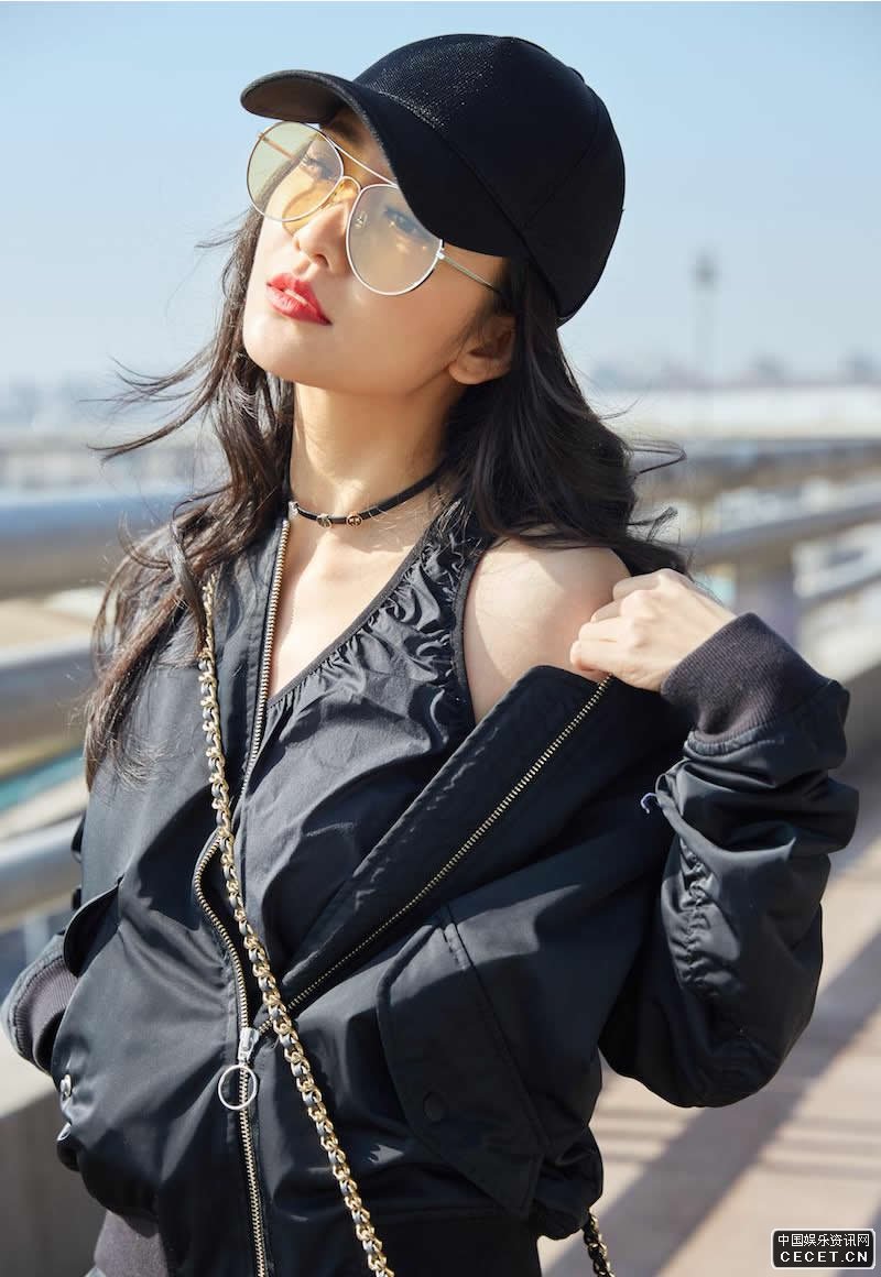 王鷗簡(jiǎn)約帥氣亮相 斜跨黑色機車(chē)單肩背包