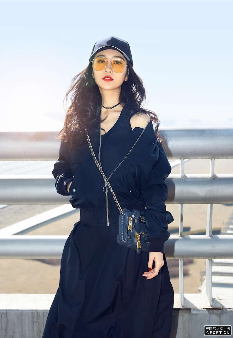 王鷗簡(jiǎn)約帥氣亮相 斜跨黑色機車(chē)單肩背包