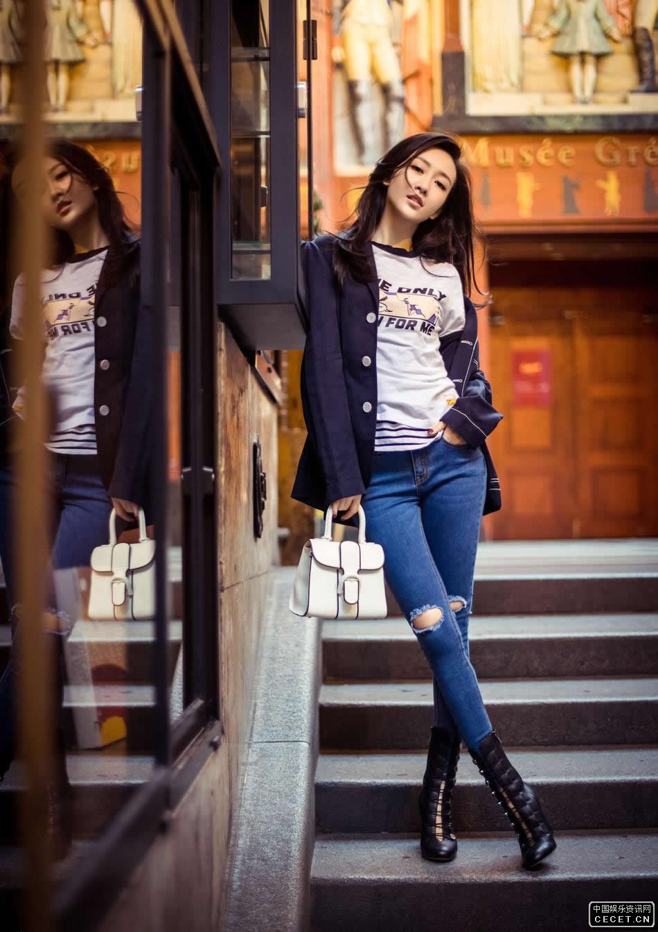 王鷗緊身牛仔街拍大片 高跟短靴美腿筆直修長(cháng)
