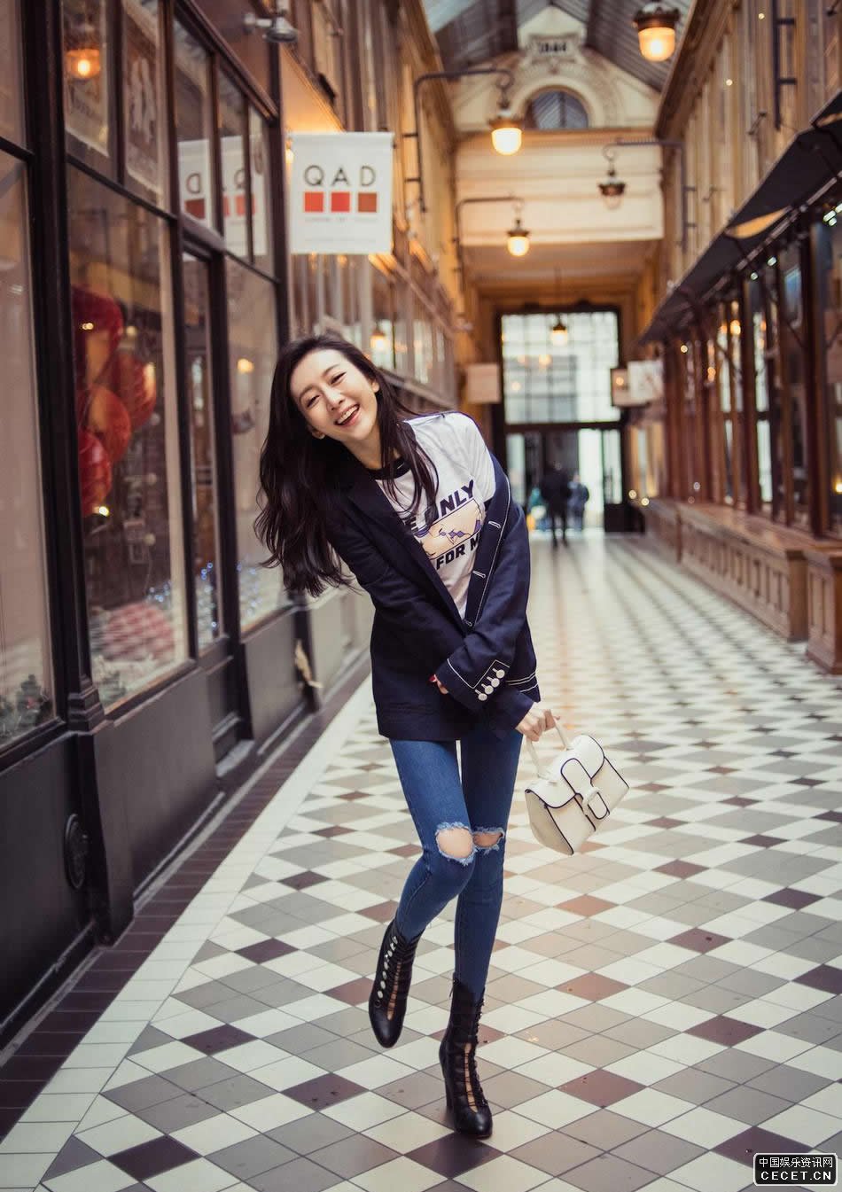 王鷗緊身牛仔街拍大片 高跟短靴美腿筆直修長(cháng)