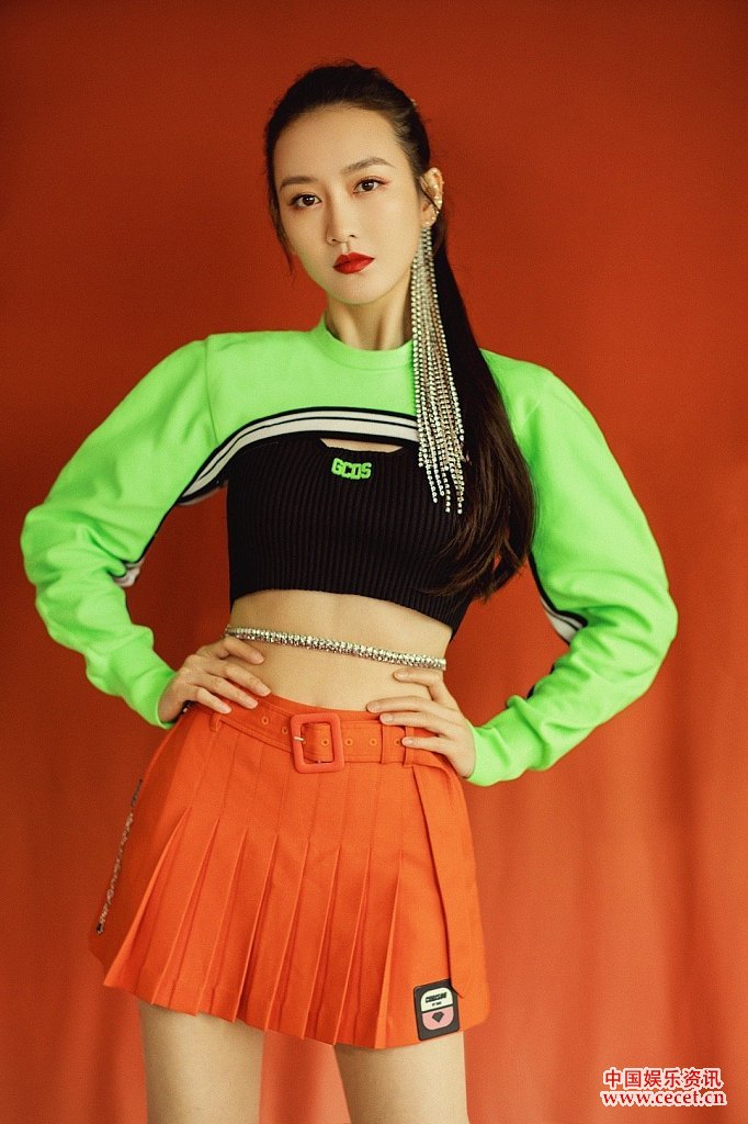 王鷗橙綠撞色裝扮寫(xiě)真 秀性感蠻腰身材熱辣