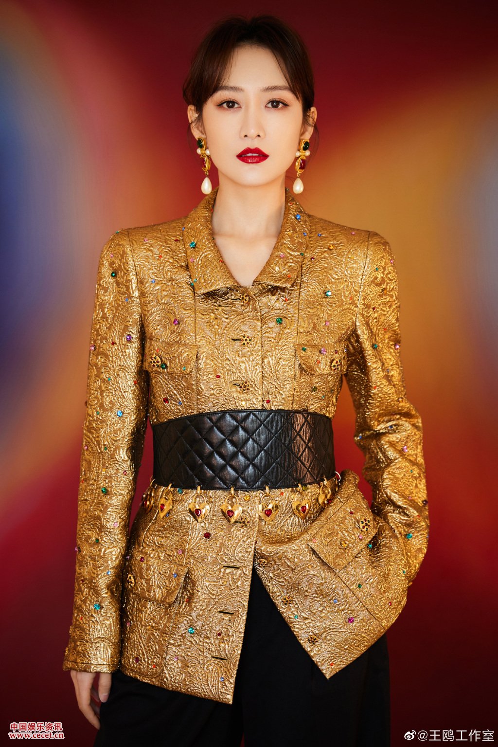 王鷗金色上衣黑色長(cháng)褲 帥酷潮流十分搶眼