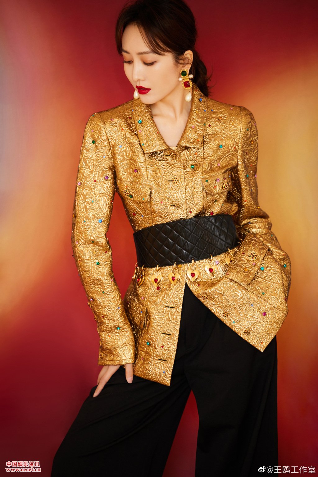 王鷗金色上衣黑色長(cháng)褲 帥酷潮流十分搶眼