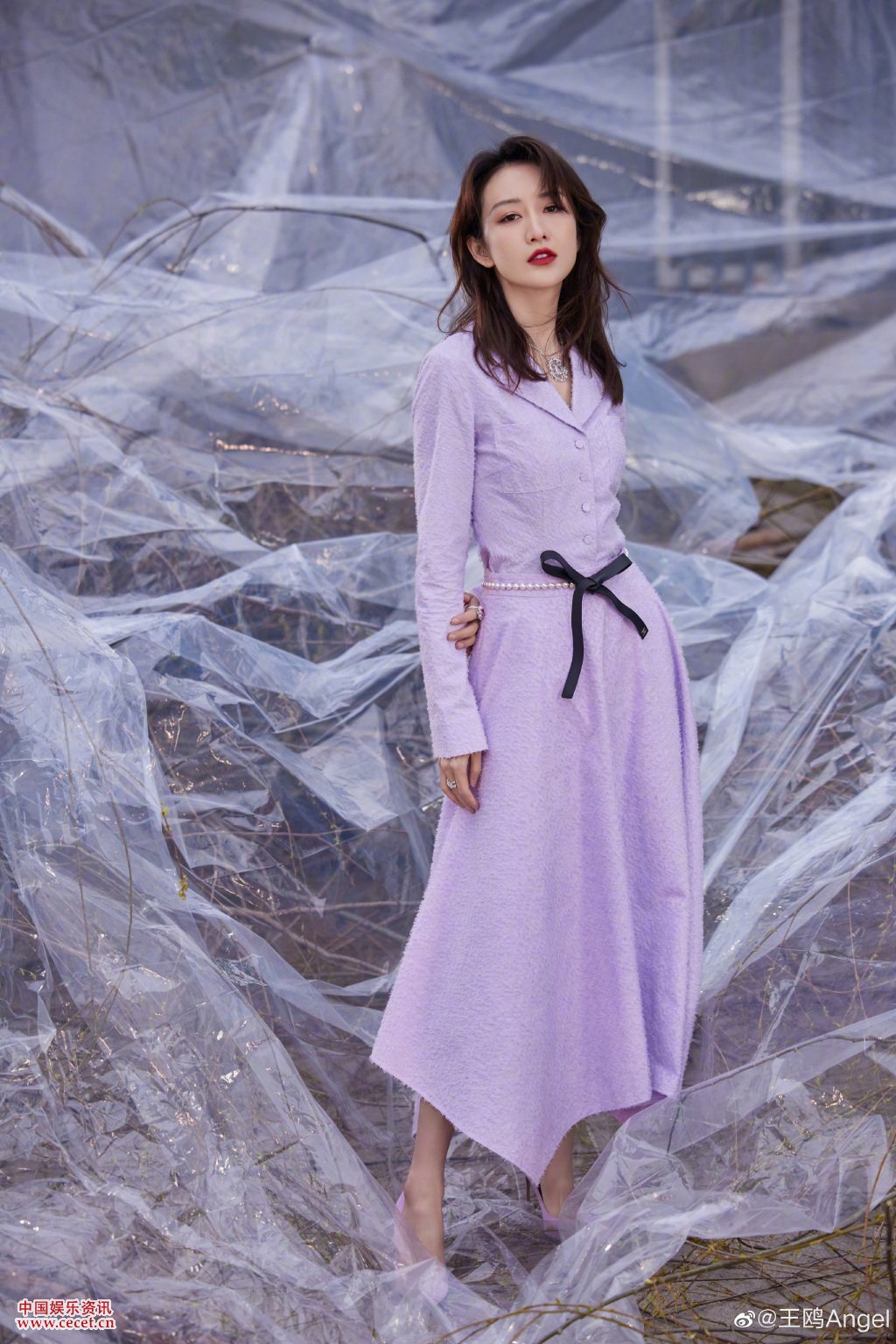 王鷗紫色長(cháng)裙簡(jiǎn)約隨性 魅力十足展輕熟女一面