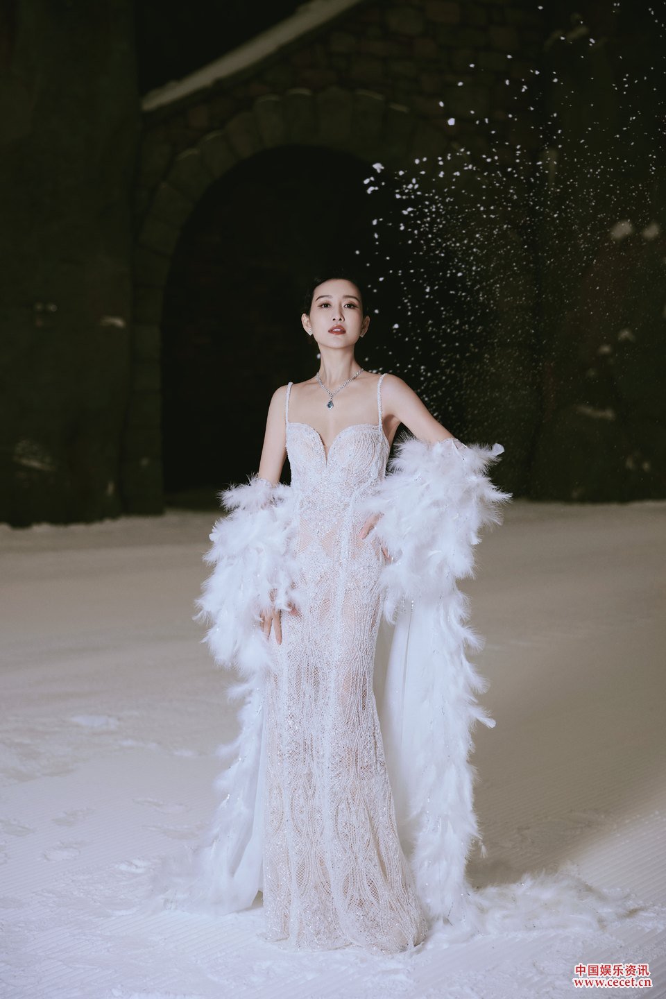 王鷗纖纖白羽盈盈而立 一朵白玉蘭在雪地里悄然綻放