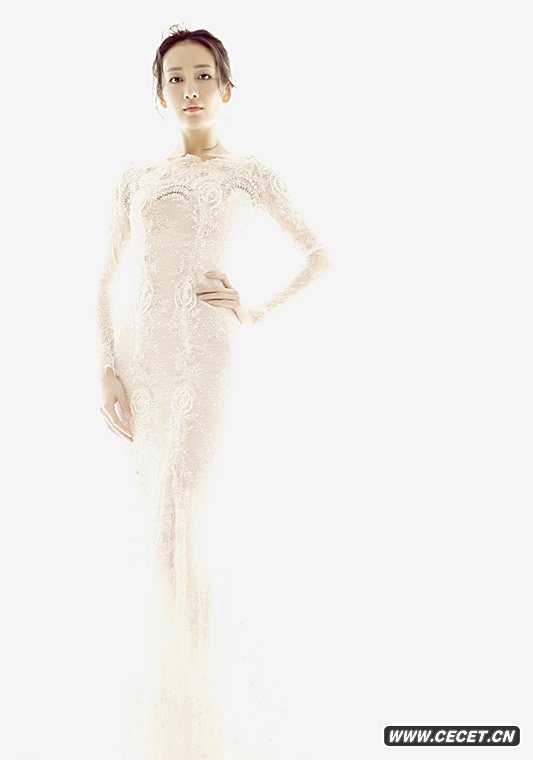 王鷗情人節時(shí)尚大片 白色修身長(cháng)裙溫婉大氣