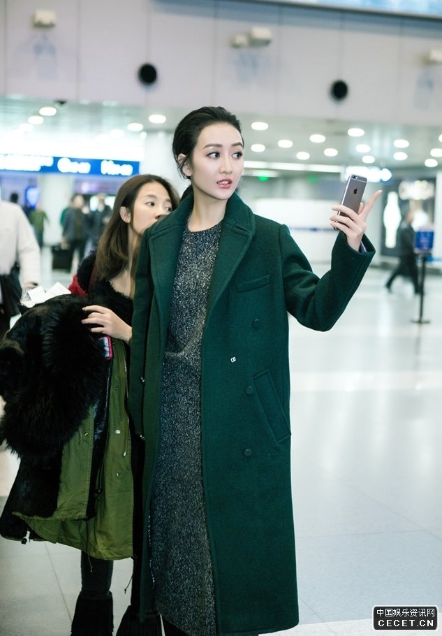王鷗現身機場(chǎng)酷勁十足 帥氣的軍綠色大衣外套