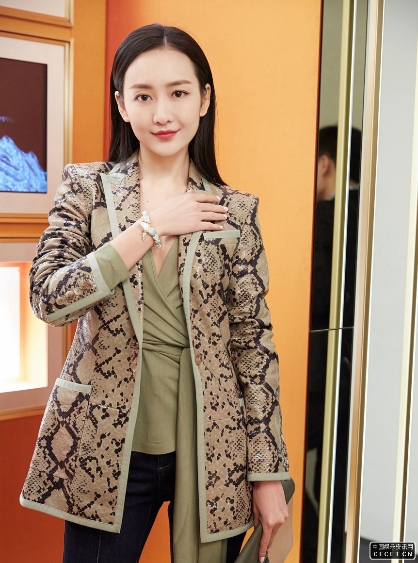 王鷗應邀參加表展 蛇紋西裝搭配真空深V上衣