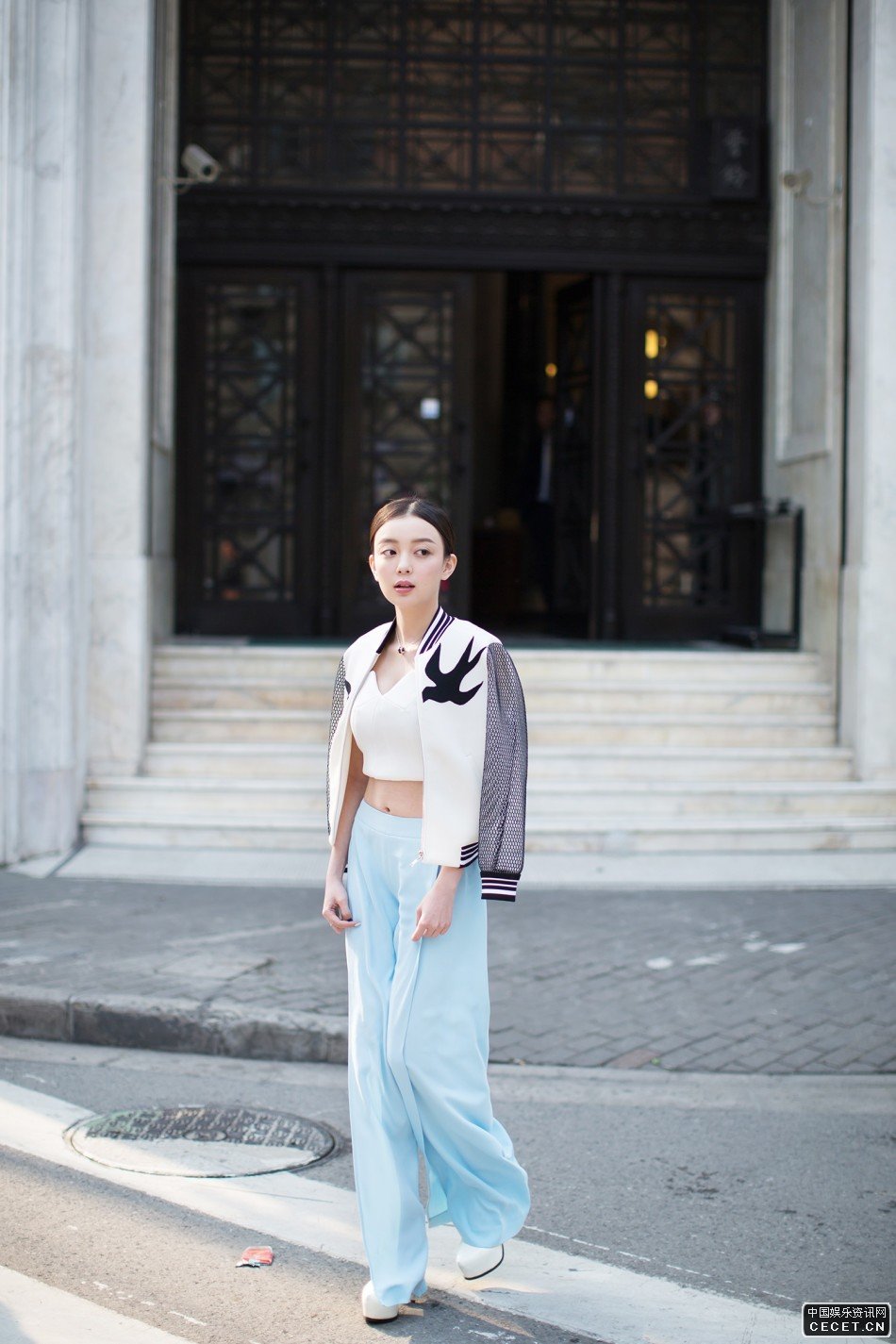 汪小敏女神范兒街拍 藍色的褲裙輕盈飄逸