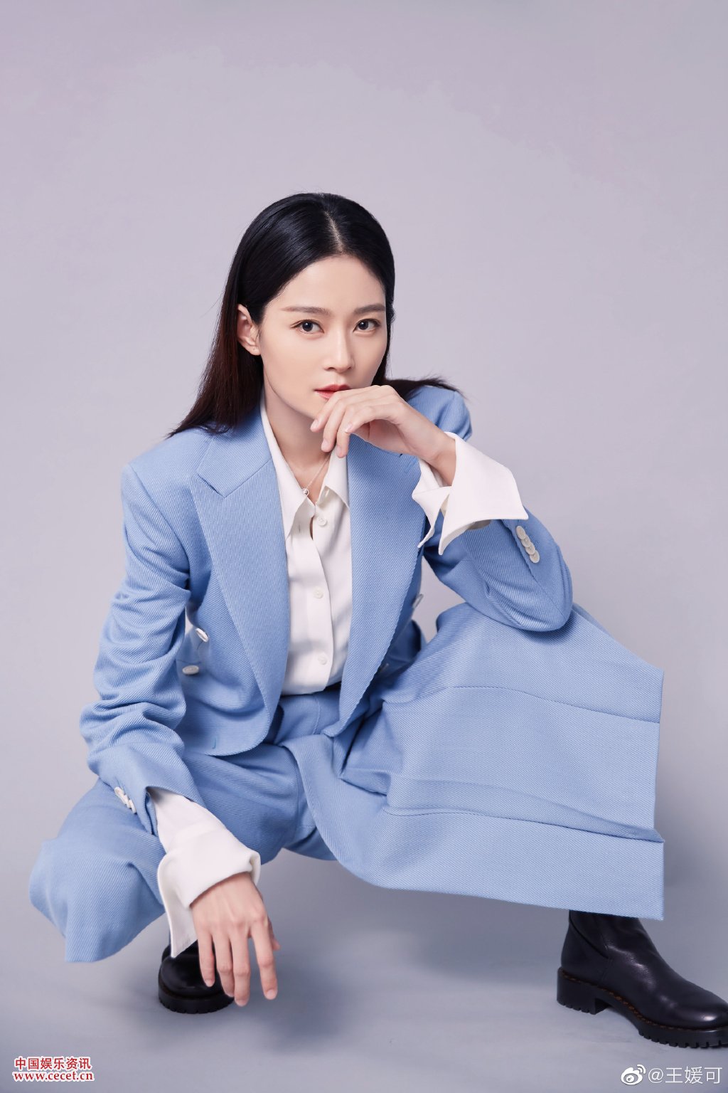 王媛可霧霾藍西服亮相 妝容精致清新明快