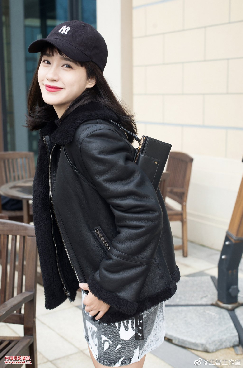王智皮衣配半身裙出街 隨性清爽又顯腿長(cháng)
