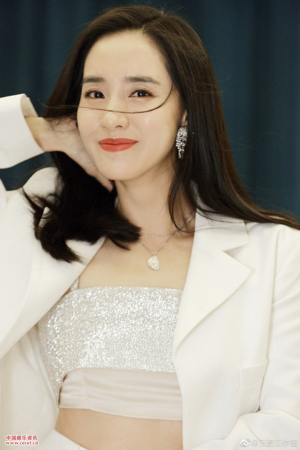 王智白色西裝高腰短褲亮鉆抹胸甜颯范兒好正
