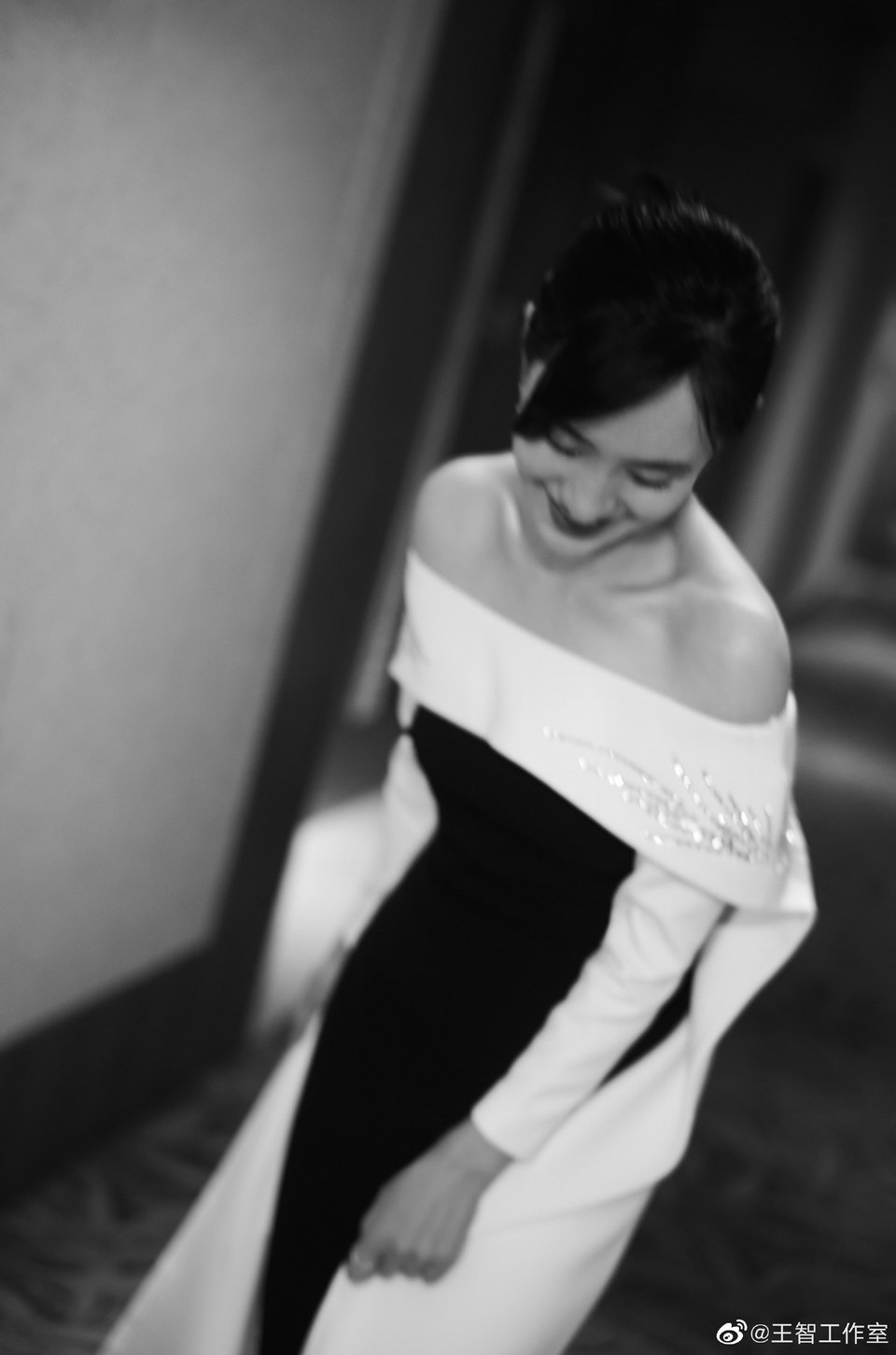 王智黑色齊肩長(cháng)裙亮相 整體造型簡(jiǎn)約亦大氣