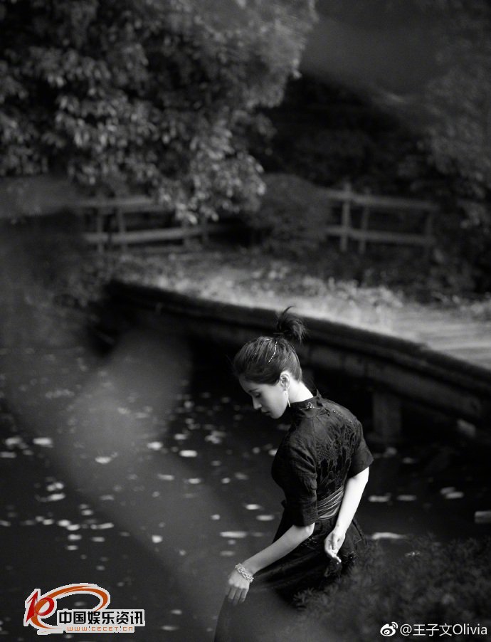王子文黑色長(cháng)裙美圖 長(cháng)裙飄飄氣質(zhì)優(yōu)雅迷人