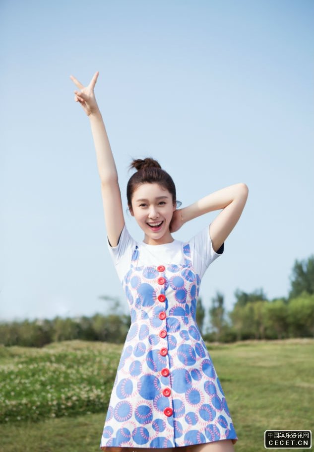 王子璇盡顯俏皮與可愛(ài) 白色T恤搭配吊帶裙