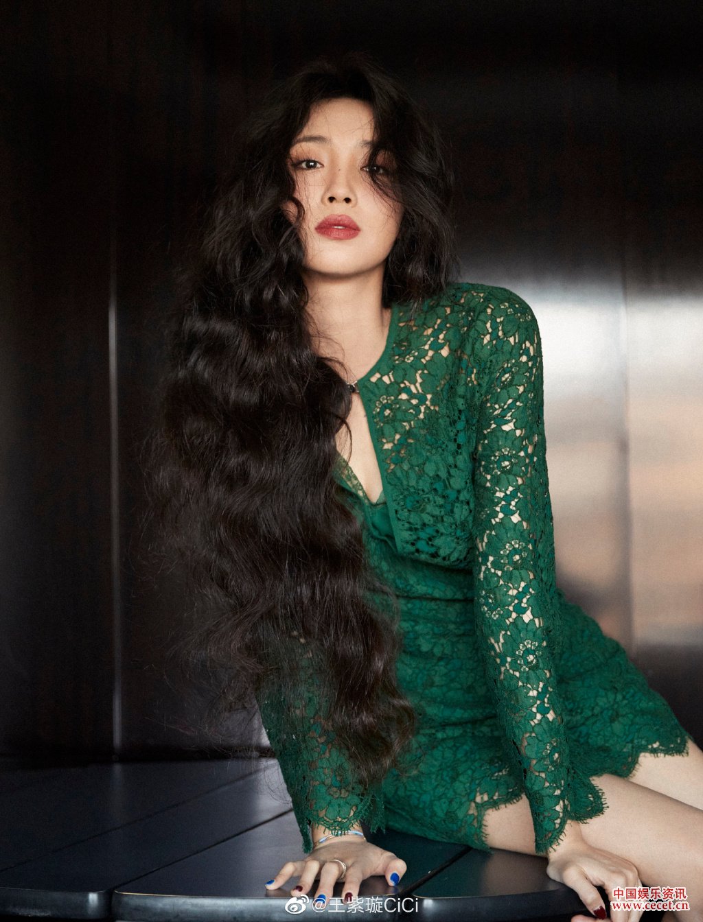 王紫璇綠色鏤空緊身裙 探尋光影綠野仙蹤