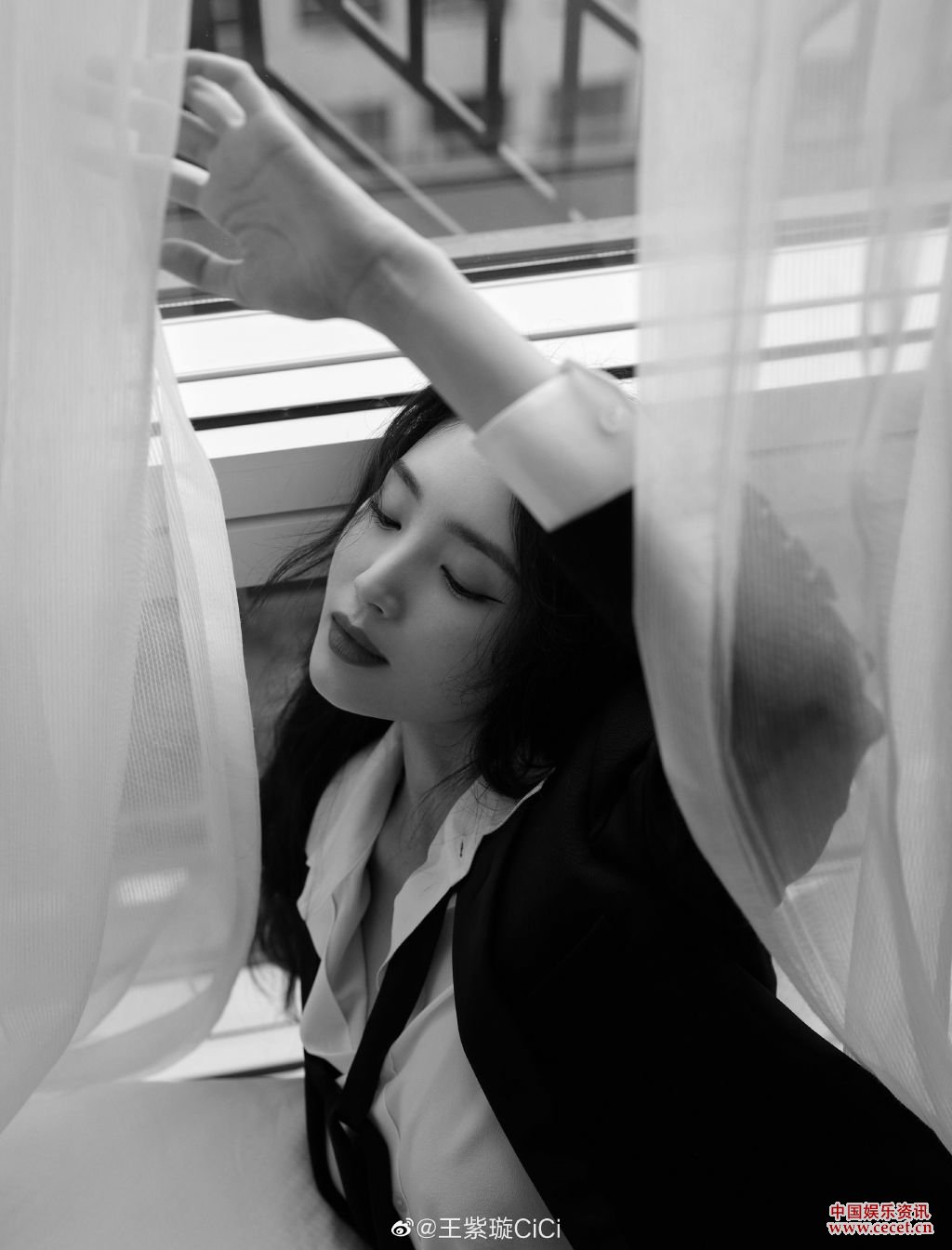 王紫璇經(jīng)典黑白吸煙裝 展間自在颯爽本真之美
