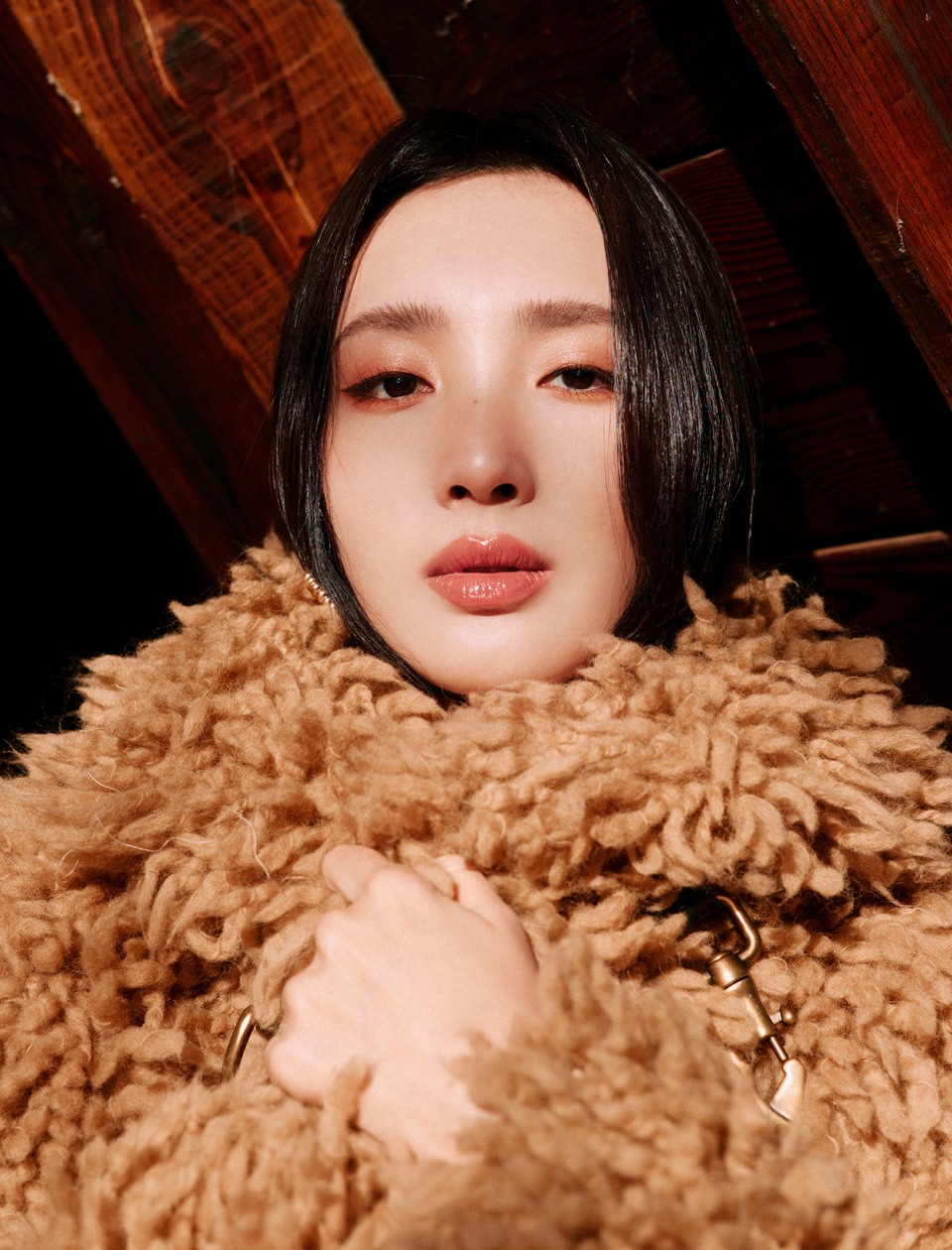 王紫璇戶(hù)外毛絨披肩 落葉和降溫暖意融融