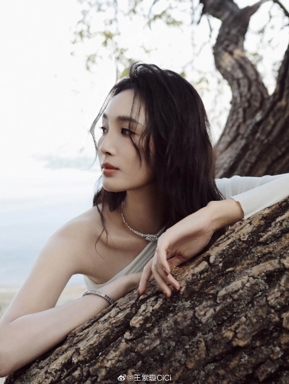 王紫璇白色衣裙湖邊照 舉手投足間盡顯精致女人范