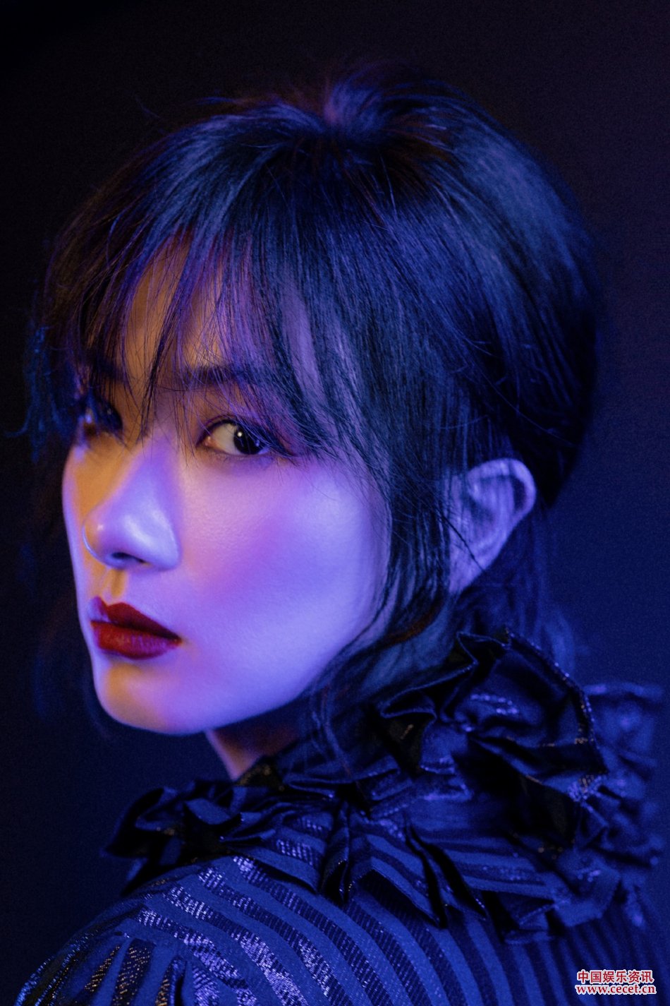 萬(wàn)茜寫(xiě)真在藍光的襯托下神秘唯美不失酷炫