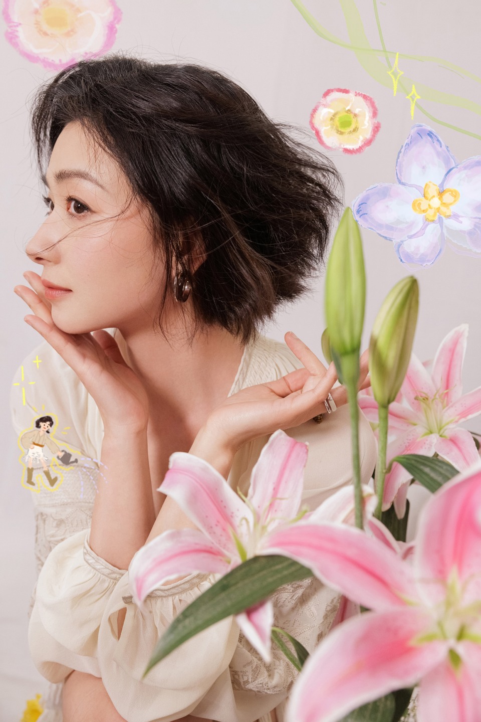 萬(wàn)茜妙筆生花佳人如畫(huà) 置身繁花之境淺笑嫣然