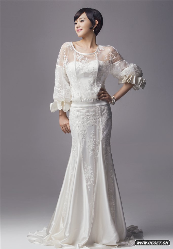 萬(wàn)茜身著(zhù)古典婚紗禮服 復古女神范兒十足