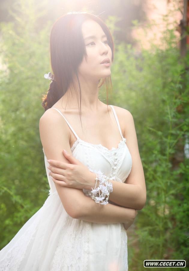 美女溫心再發(fā)淡雅寫(xiě)真 白色裙在晨曦中沐浴