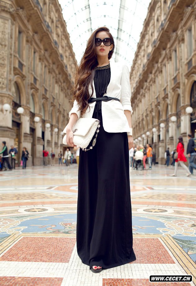 溫心米蘭教堂前黑白色時(shí)尚街拍