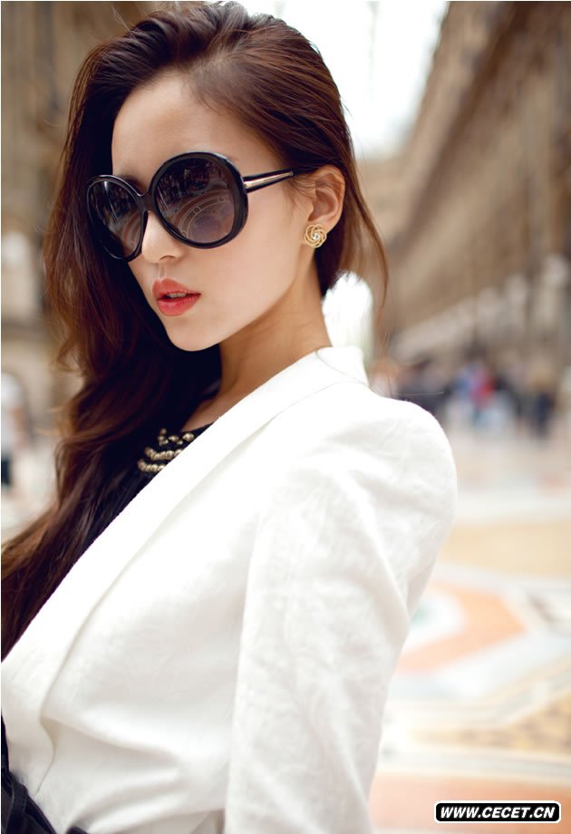 溫心米蘭教堂前黑白色時(shí)尚街拍