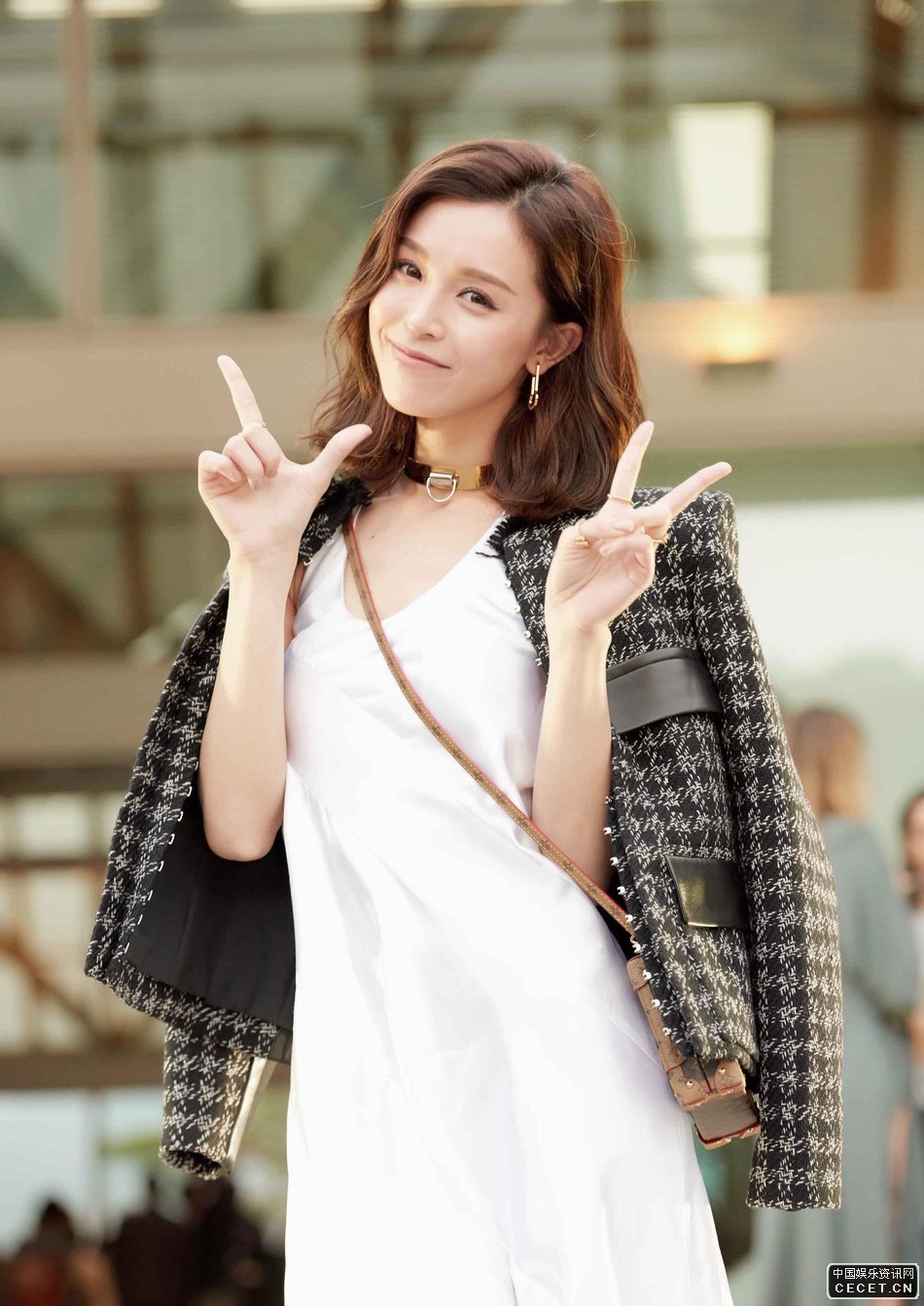 文詠珊白色連衣裙搭配黑色格紋西裝亮相秀場(chǎng)