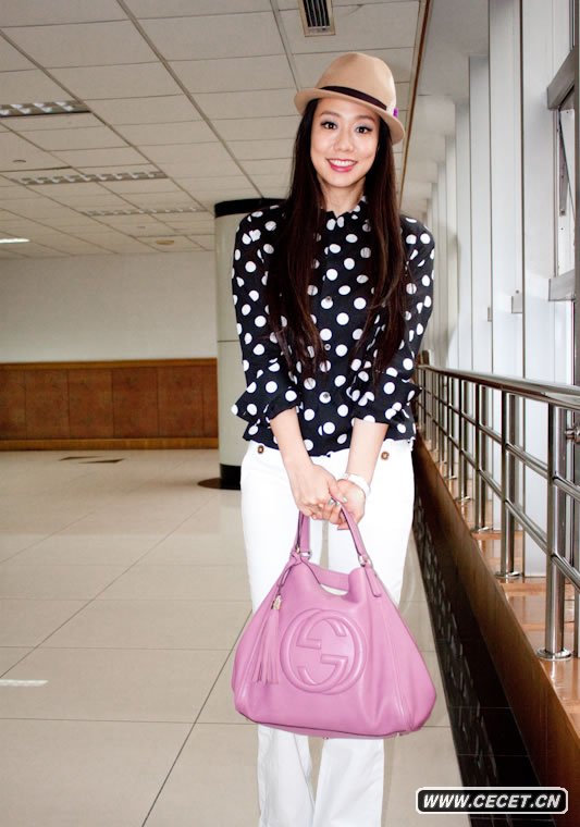 吳辰君街拍LOOK 黑白波點(diǎn)襯衣搭配白褲