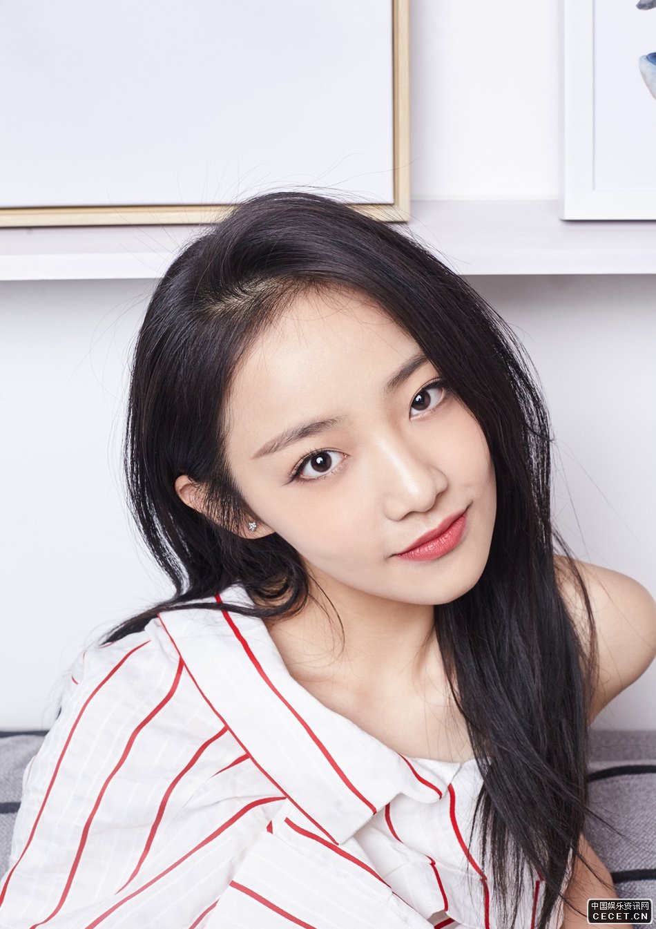 吳佳怡紅條襯衫寫(xiě)真照 半露香肩充滿(mǎn)靈氣