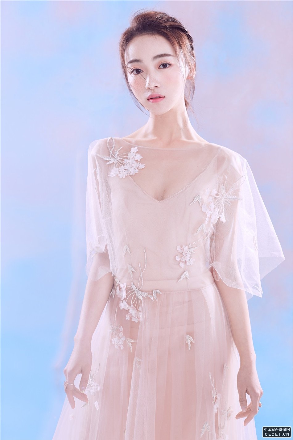 吳謹言粉嫩紗裙出鏡 肌膚光滑白嫩清新純美