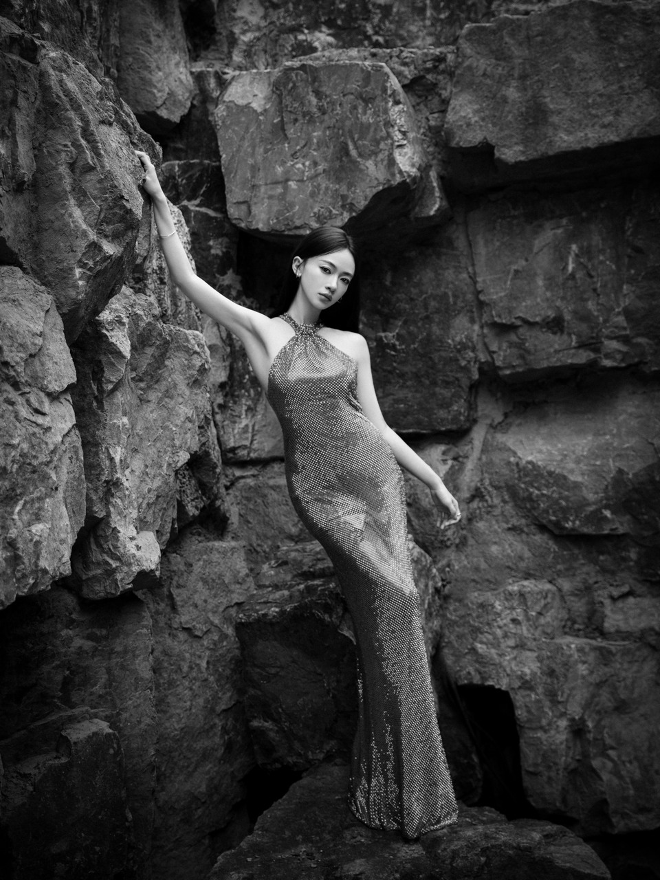 吳謹言?huà)觳濒~(yú)鱗裙定格超A瞬間 鎏金閃爍顧盼生輝