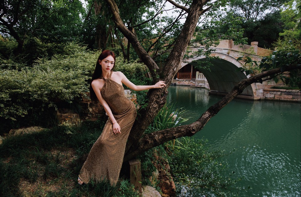 吳謹言?huà)觳濒~(yú)鱗裙定格超A瞬間 鎏金閃爍顧盼生輝
