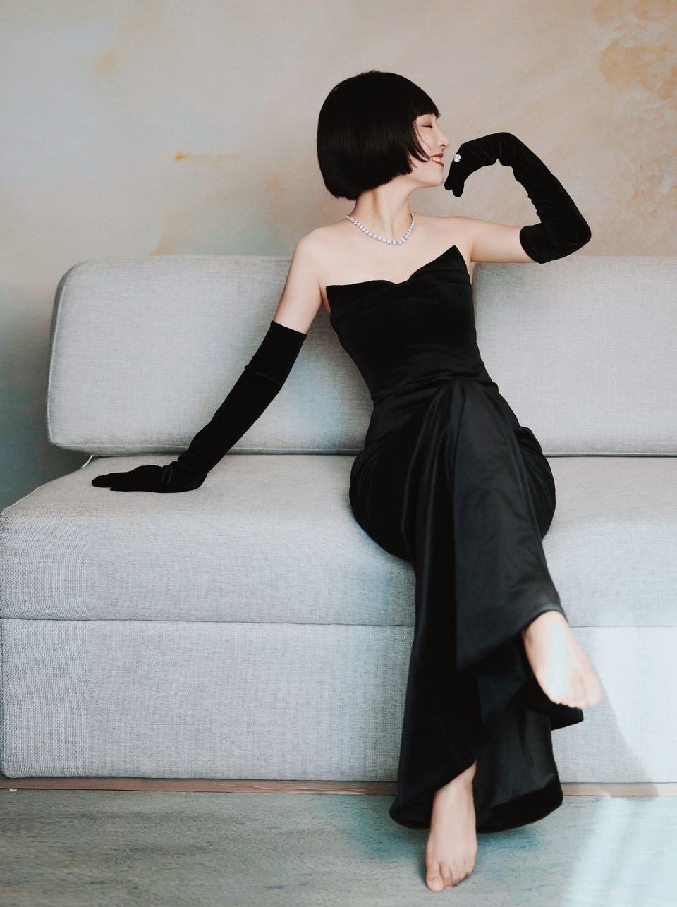 吳倩墨綢相襯蓄蘊復古格調 裙裾輕拭愜享時(shí)分