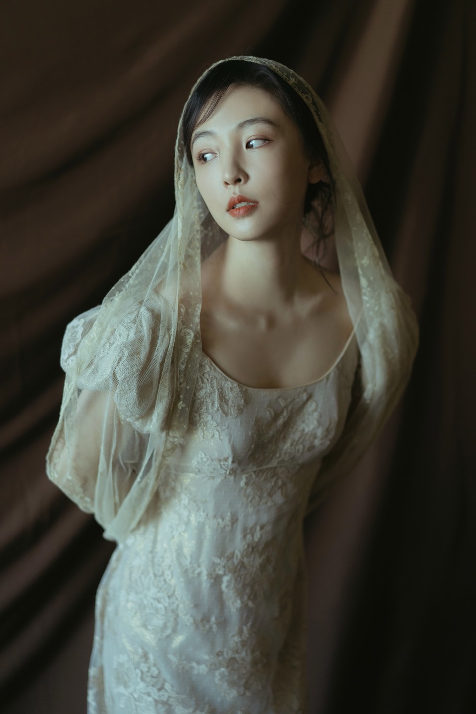 吳倩霧紗拂袖恬然入畫(huà) 斜暉半照玉靨承塵
