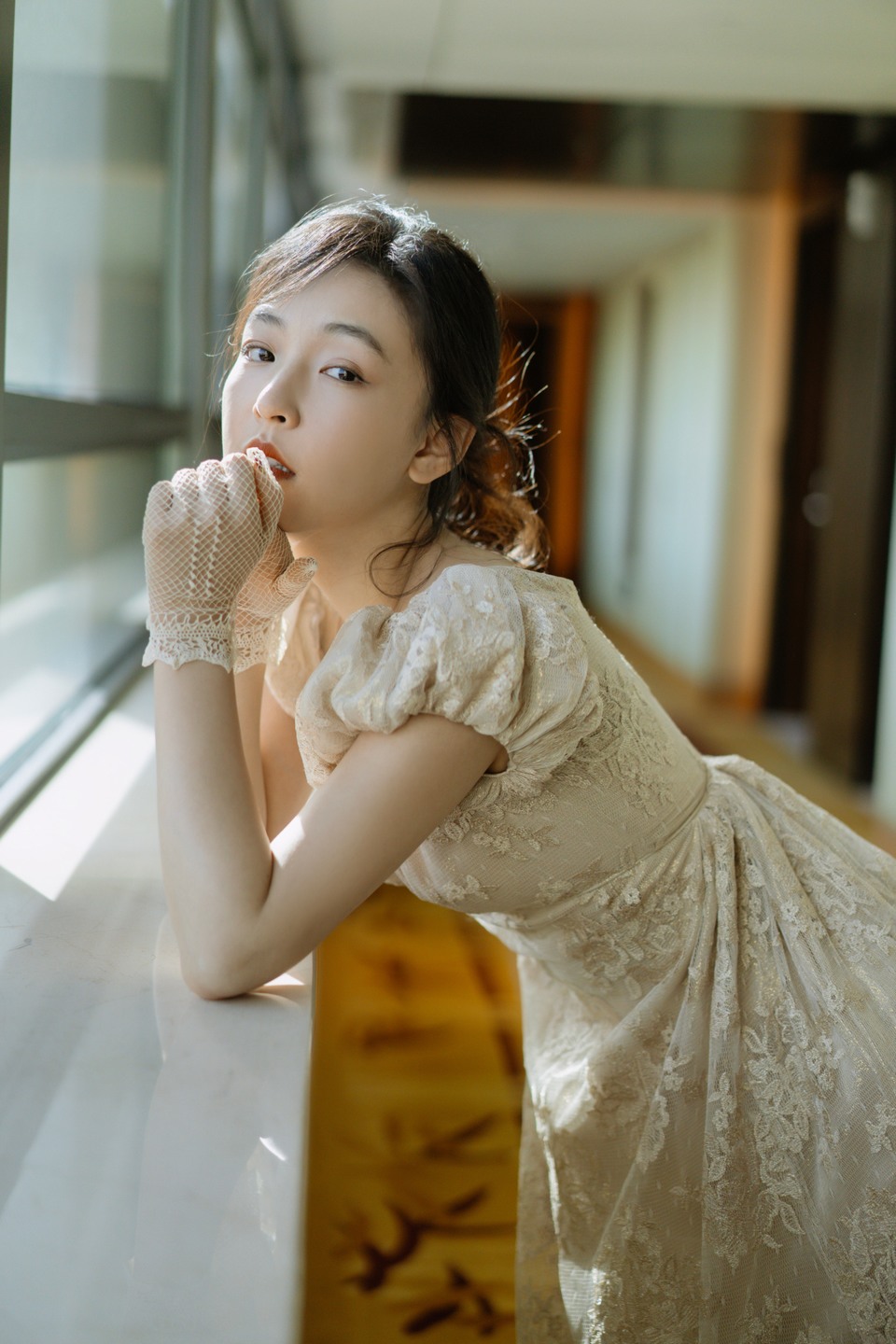 吳倩霧紗拂袖恬然入畫(huà) 斜暉半照玉靨承塵