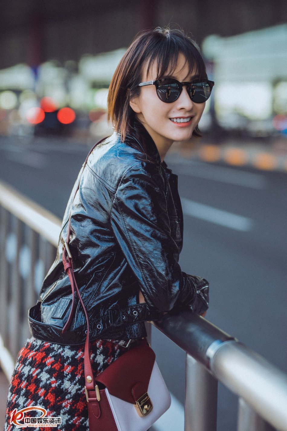吳昕昕簡(jiǎn)約白色T恤衫及紅色格子短裙酷帥感十足