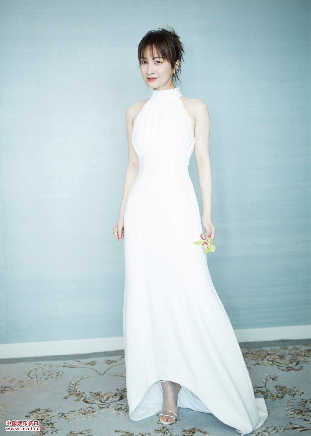 吳昕一襲白色掛脖長(cháng)裙 端莊優(yōu)雅女神范兒十足