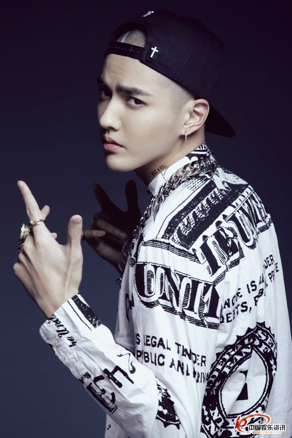 吳亦凡黑紋襯衫頭戴黑色棒球帽盡展嘻哈風(fēng)