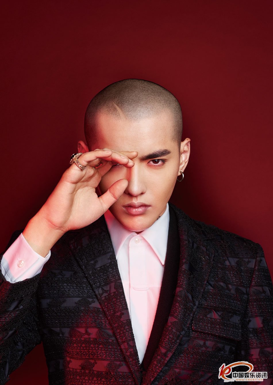 吳亦凡光頭冷峻眼神 潮裝搭配顯得霸氣十足