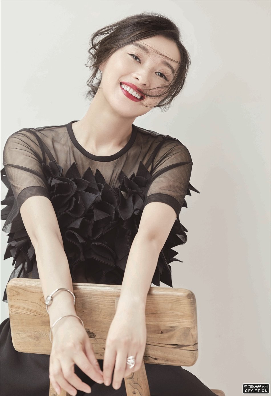 吳越淡妝紅唇大氣端莊 神情慵懶透著(zhù)知性美