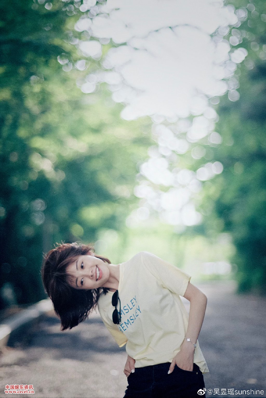 吳昱瑤齊肩短發(fā)美照 束光散在臉上留住青春