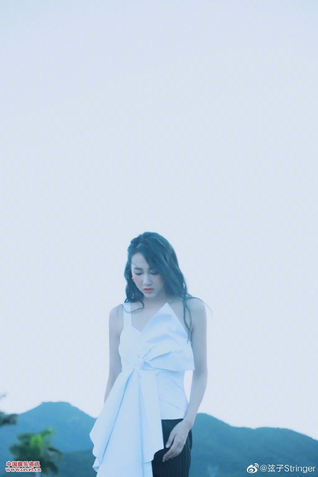 弦子戶(hù)外露肩裝大片 搭配喇叭長(cháng)褲霸氣十足
