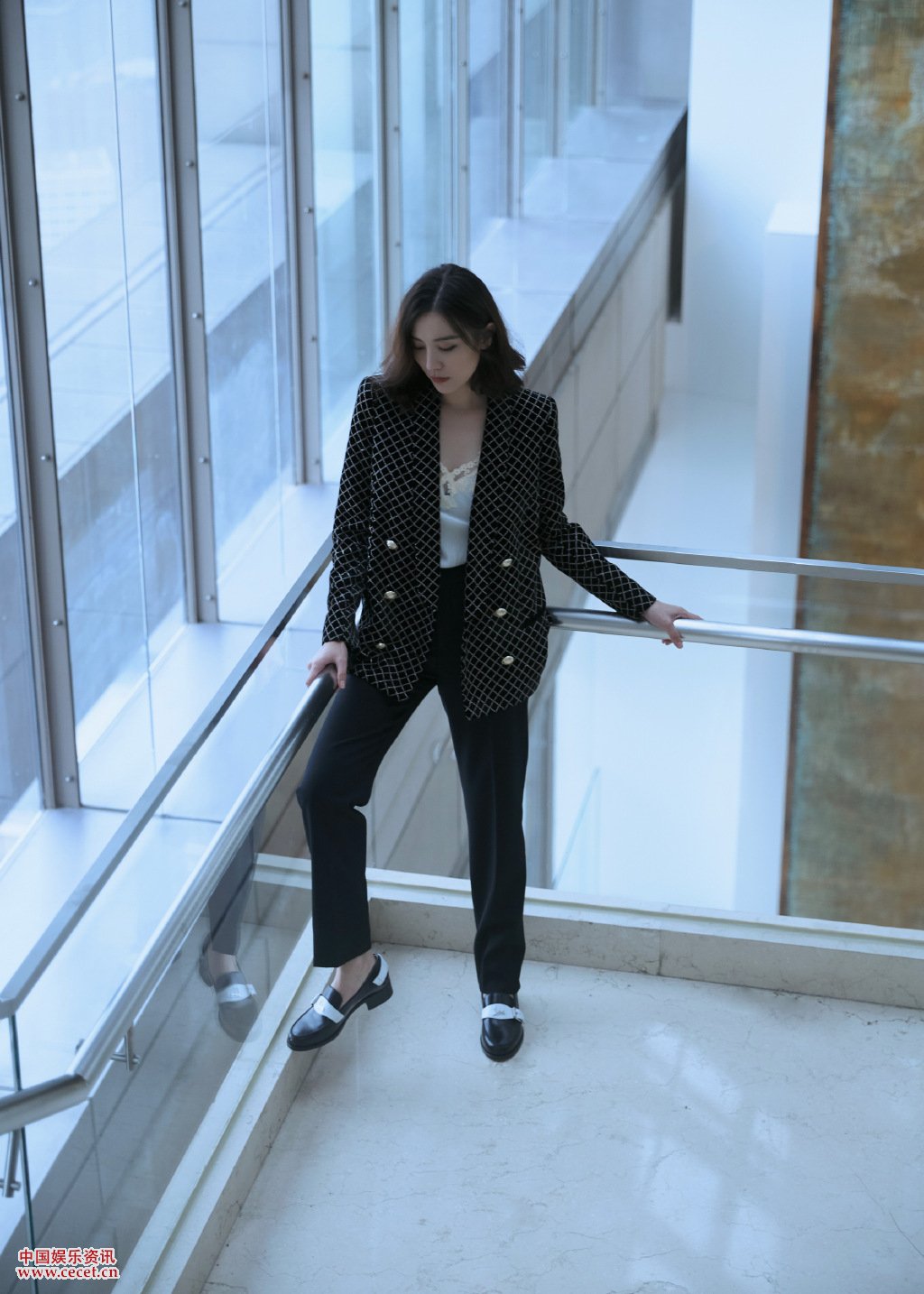 宋佳西裝搭配隨性干練中不乏若隱若現的性感氣息