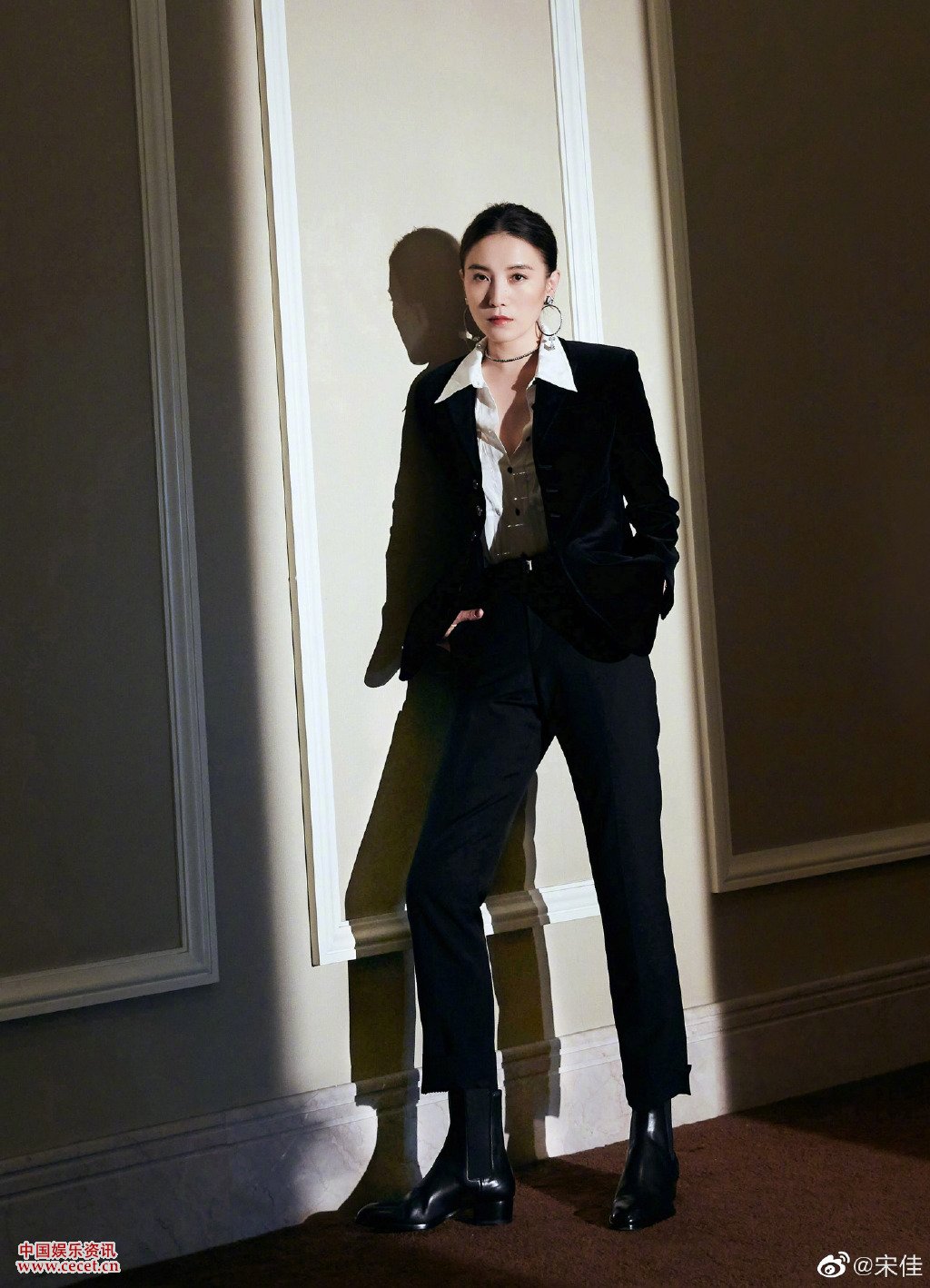 宋佳西裝外套修身長(cháng)褲 帥酷合體英氣十足